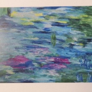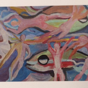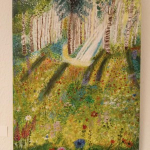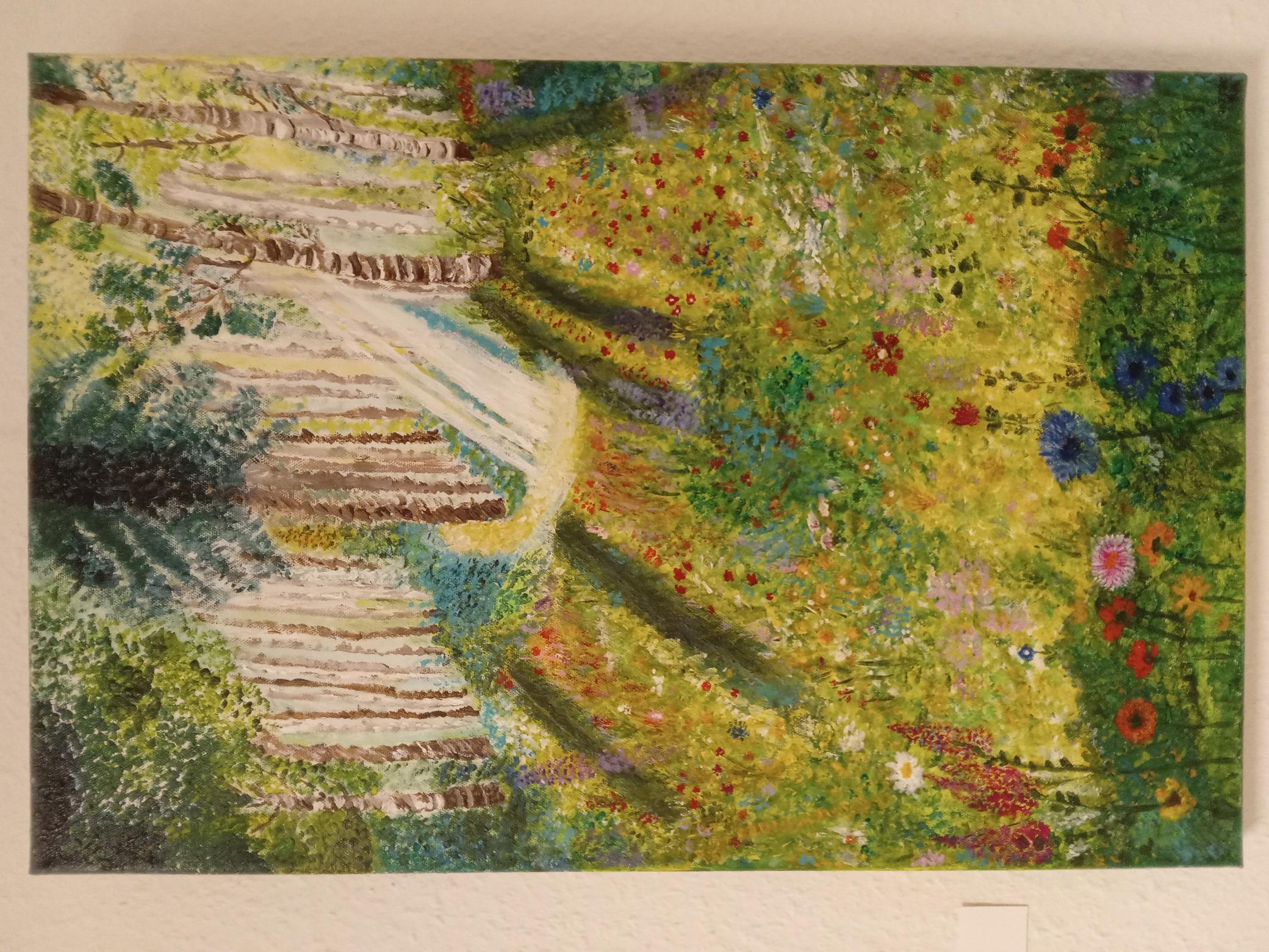 Da gibt es beispielsweise die „Wasserlandschaft“, in der die Farben ineinander strömen. Die Künstlerin hat sich hier von der Farbe leiten lassen, ohne zunächst zu wissen wo die Reise hin geht.