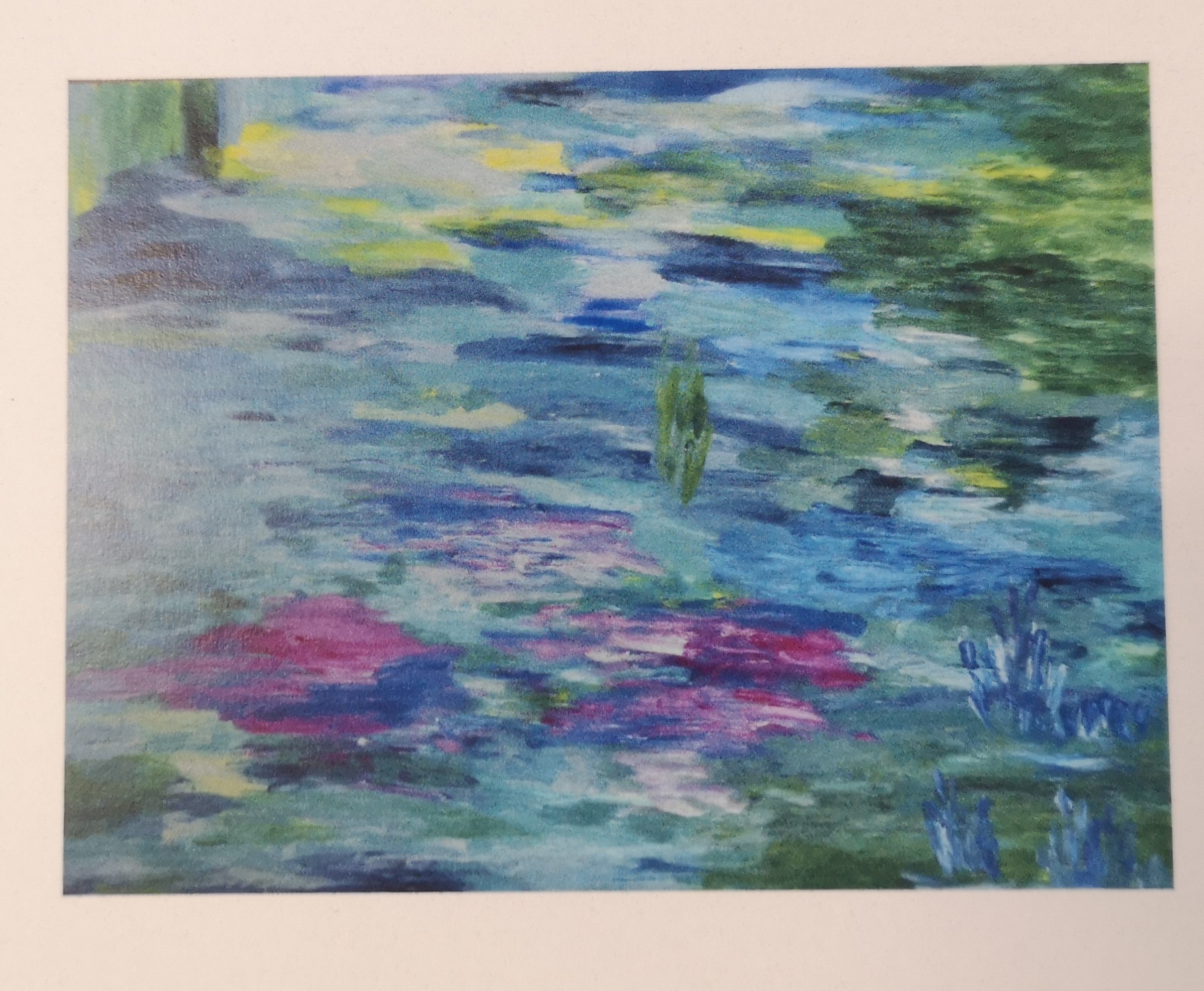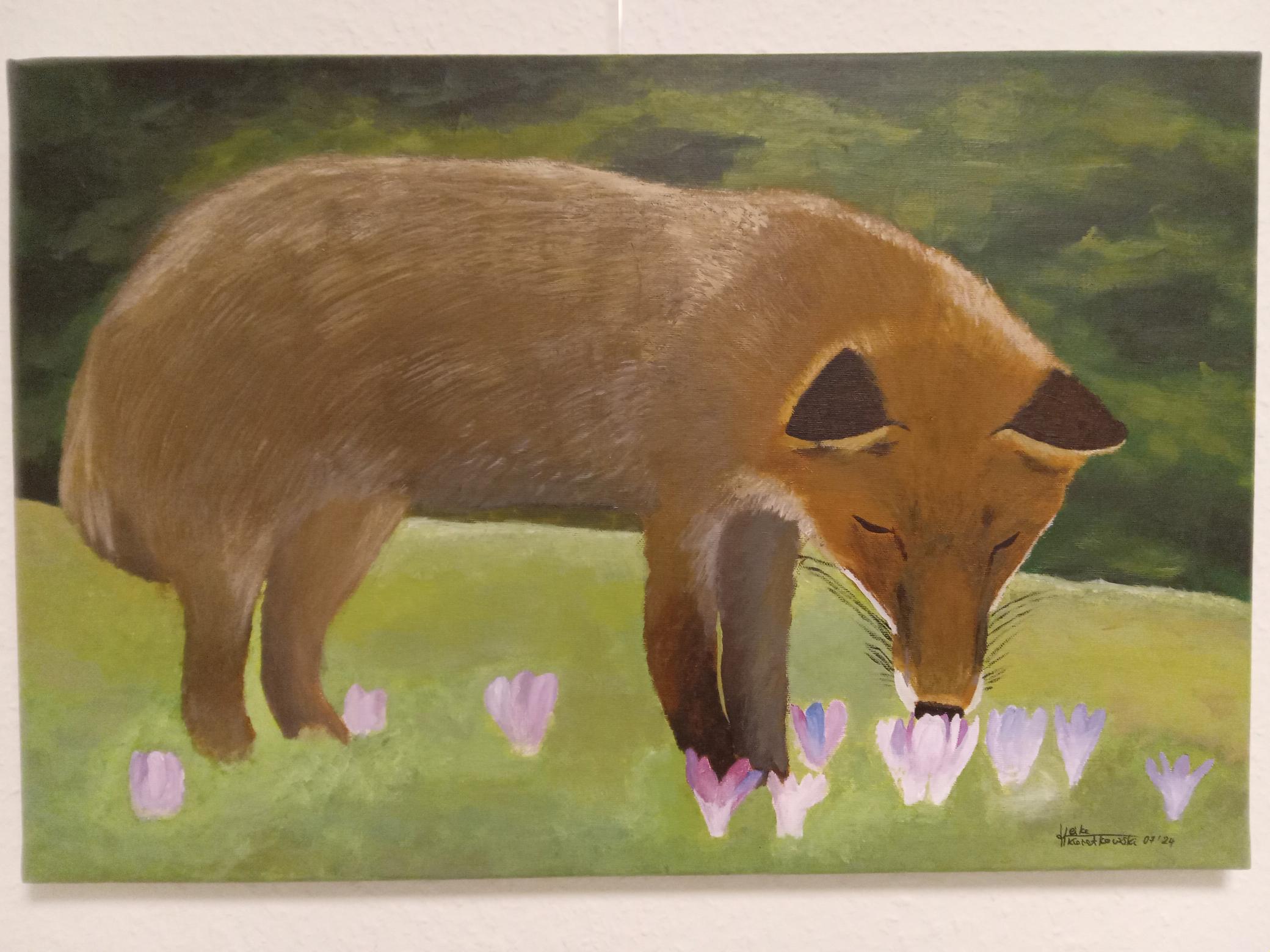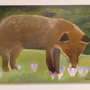 Eine weitere Teilnehmerin der Malwerkstatt versucht hingegen in ihren Werken „Fallendes Blatt“ , „Verzückung“ und „Träumender Eisbär“ die Natur ganz exakt abzubilden, was sie oft zu kreativen Lösungen und dem Ausprobieren neuer Techniken führt.